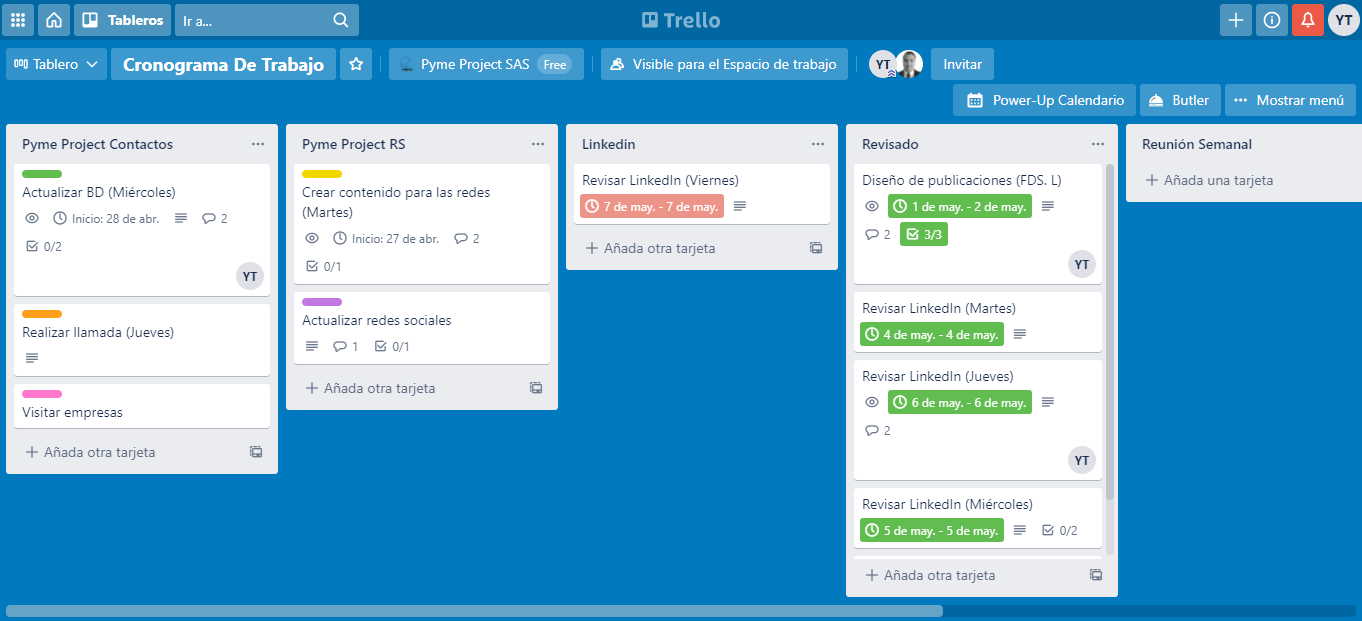 - Trello: Es una herramienta digital que tiene como función principal facilitar el trabajo en equipo y fomentar la colaboración. Esta funciona por medio de la metodología Kanban, integrando tableros que se pueden organizar teniendo en cuenta la categoría o el proceso que representan.